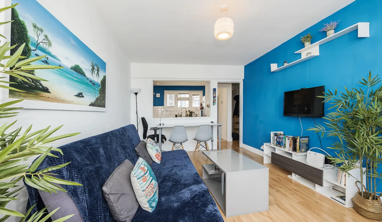 This 1-bed flat has been entirely prepared and designed for our guests. It boasts a large and fully equipped kitchen a living room with a balcony and great views, a well-sized bedroom and a bathroom. The property is recently refurbished and modernised to very high standards. The sea-inspired decoration provides flair and comfort to the flat. Not exactly open-plan, however the living room has immediate access to the kitchen.